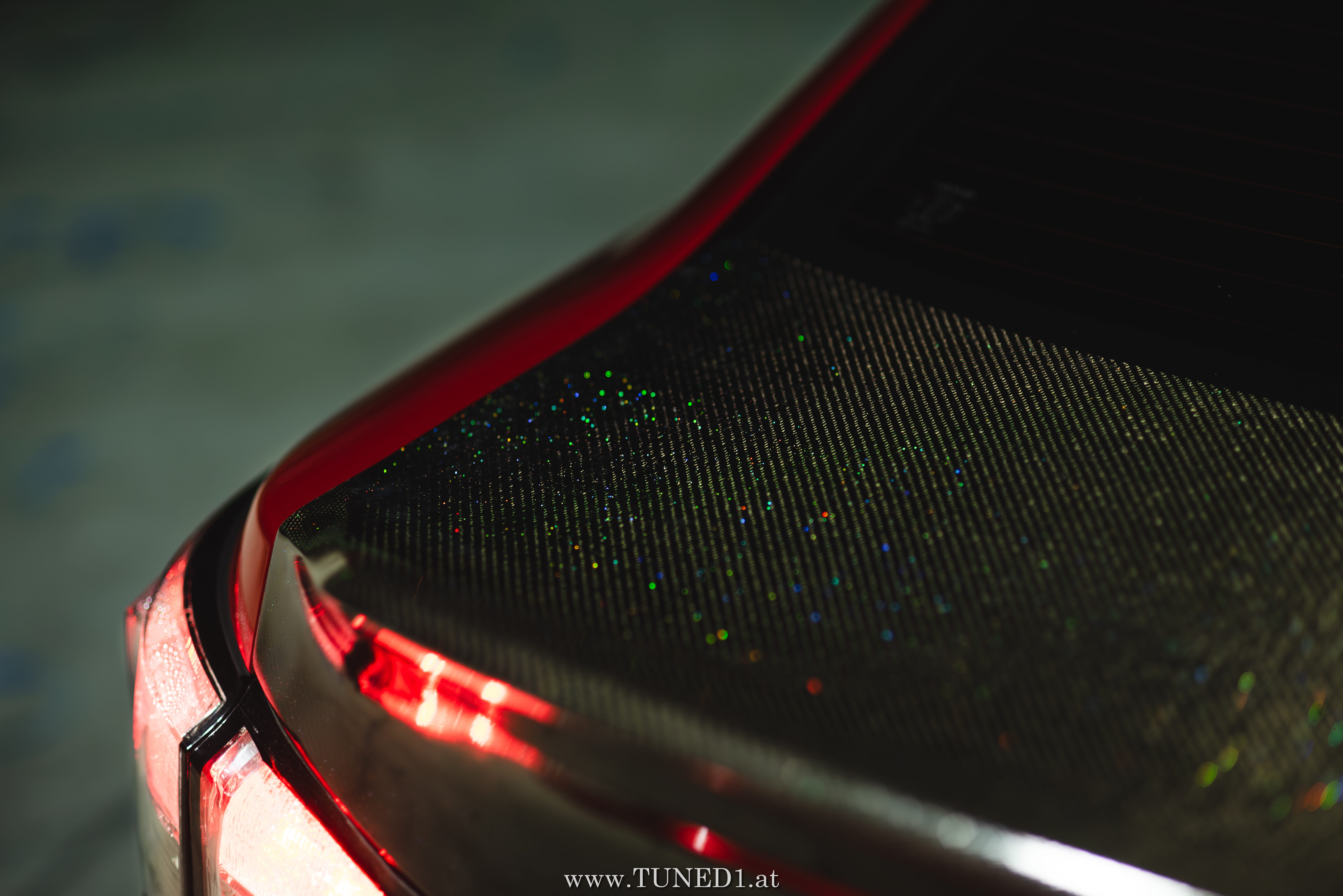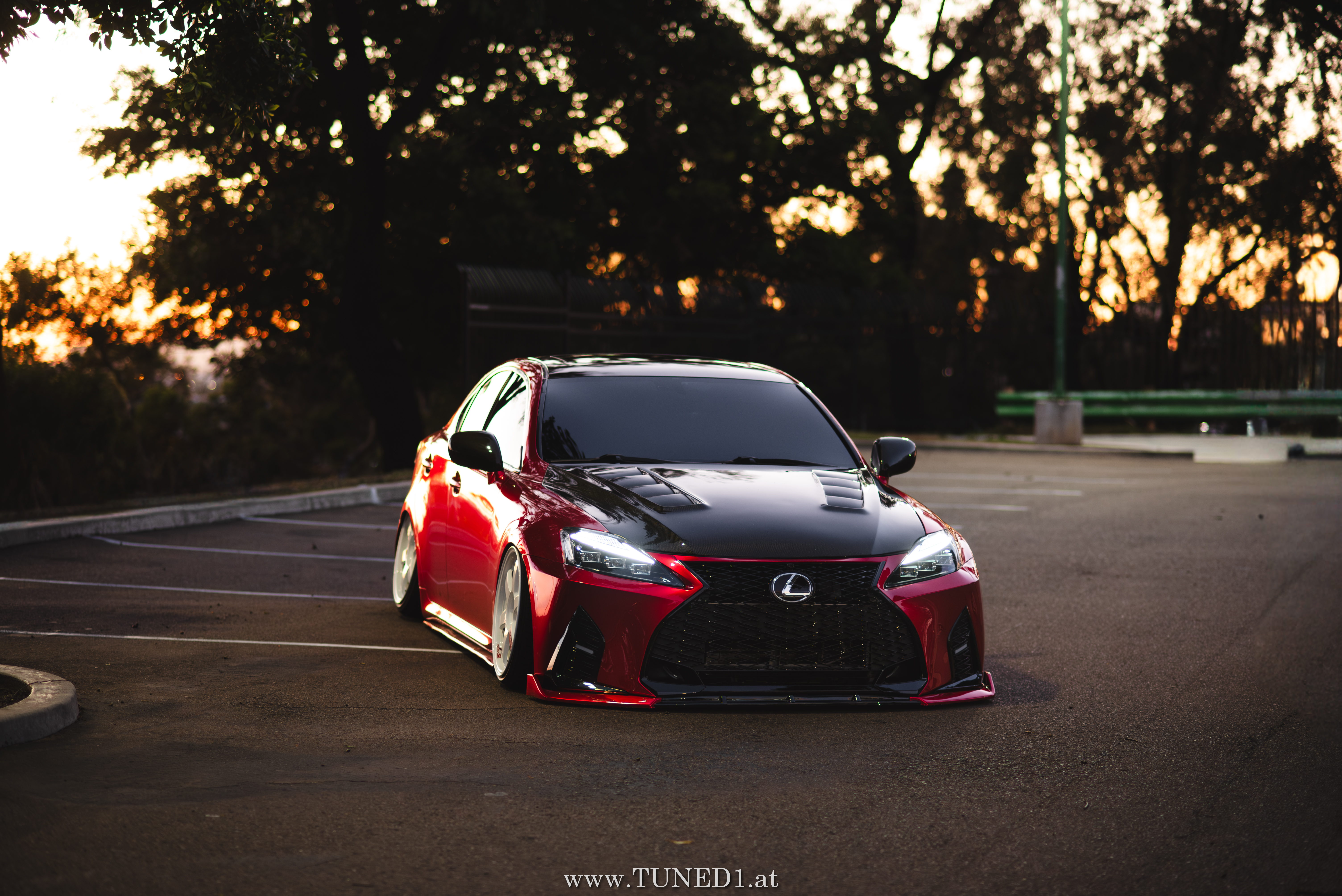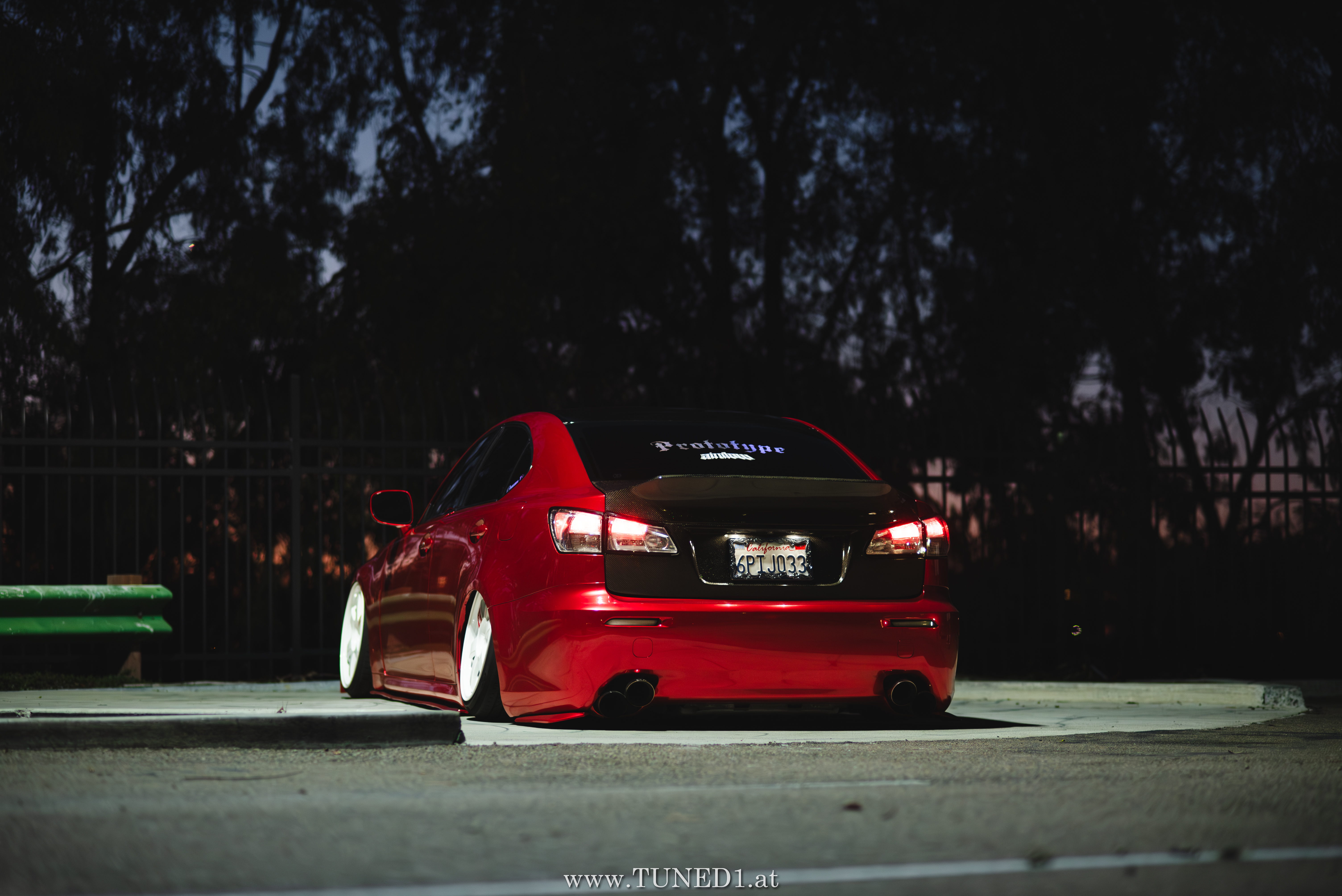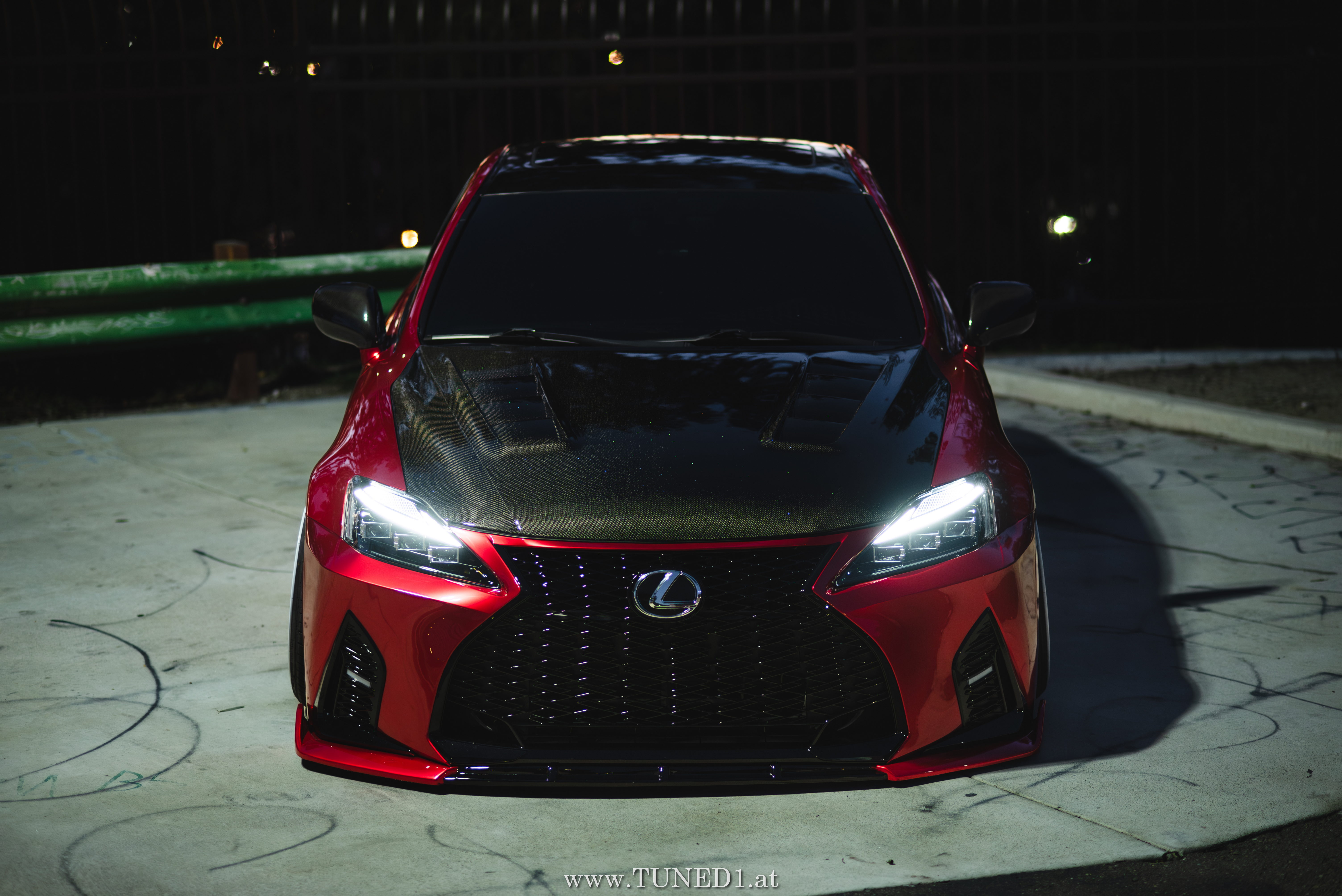 Frontstange vom Nachfolgemodell, LED Scheinwerder und Heckleuchten, Luftfahrwerk, VolkRacing by Rays und rote Perleffekt Folie machen in Kombination mit den Carbonteilen inkl. Glitterlackierung, machen aus dem sonst so schnöden Lexus eine richtig geile Tunerkarre.