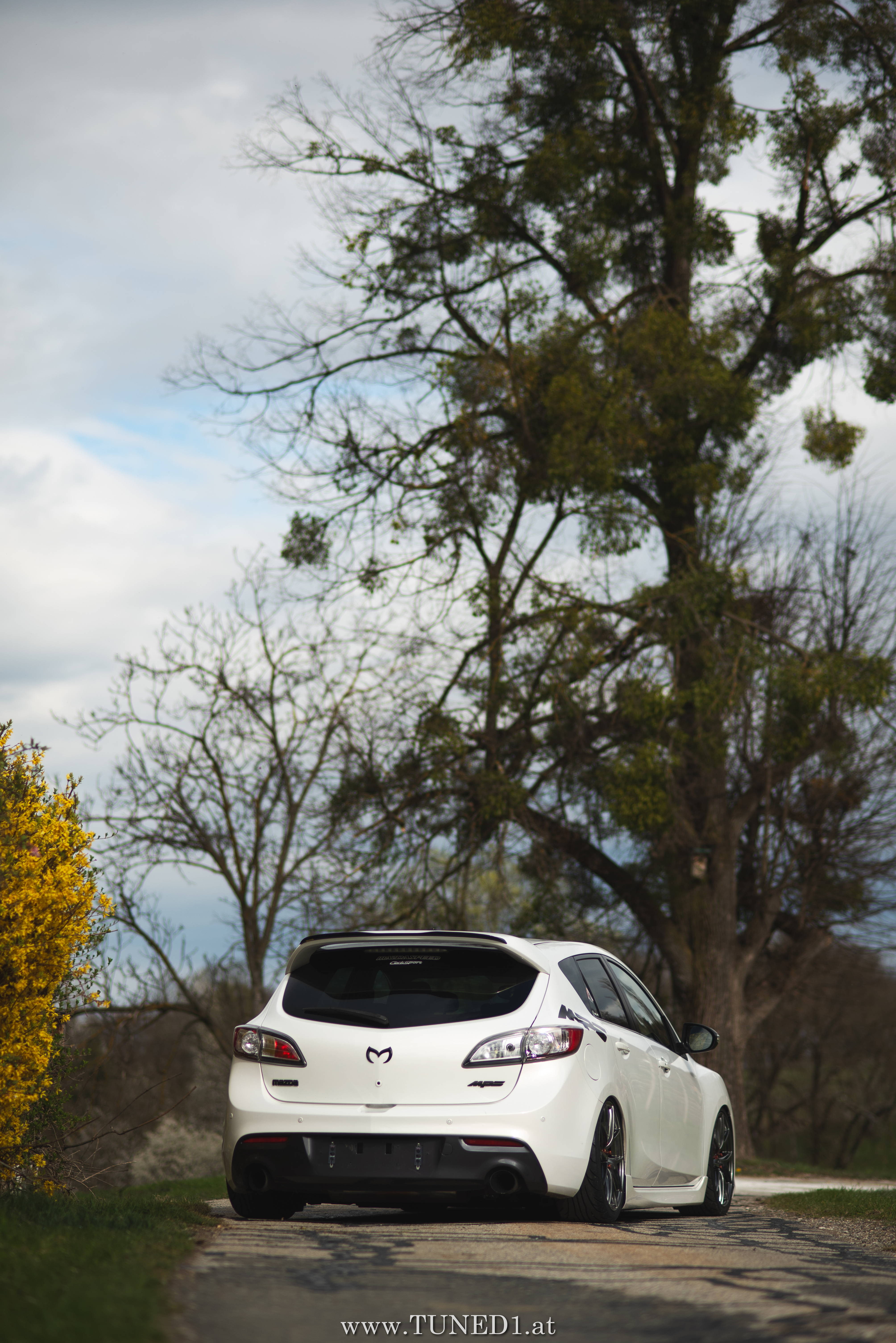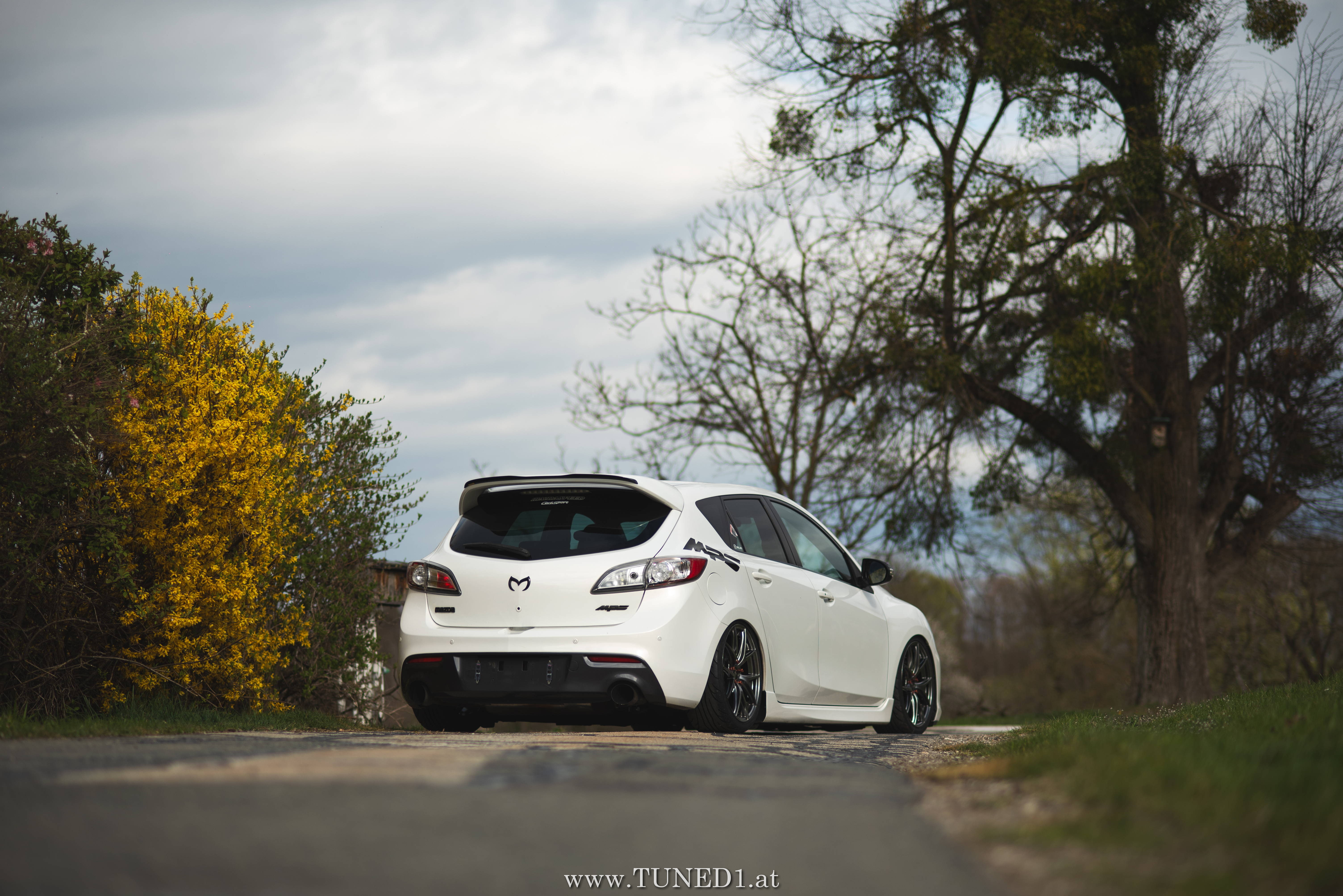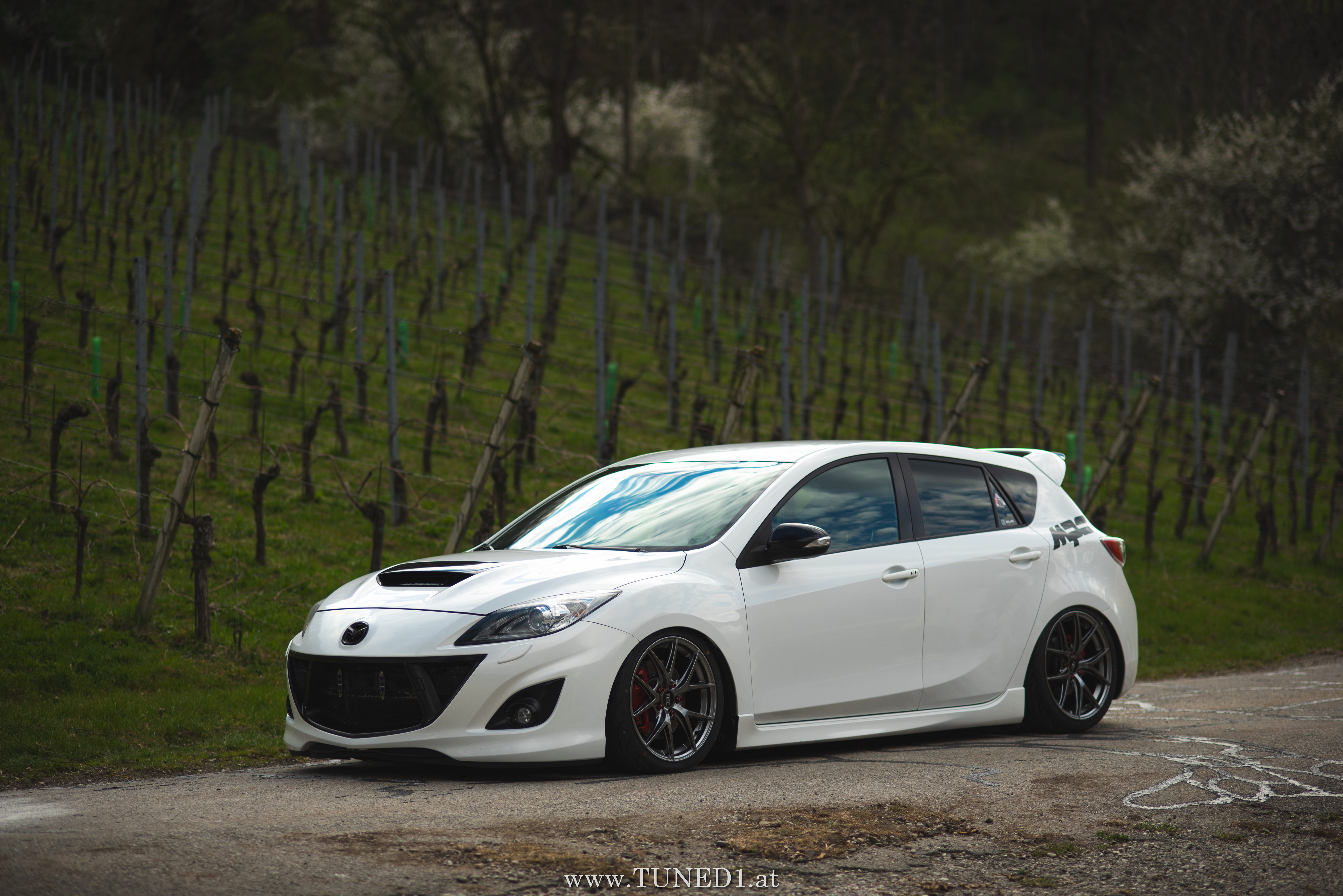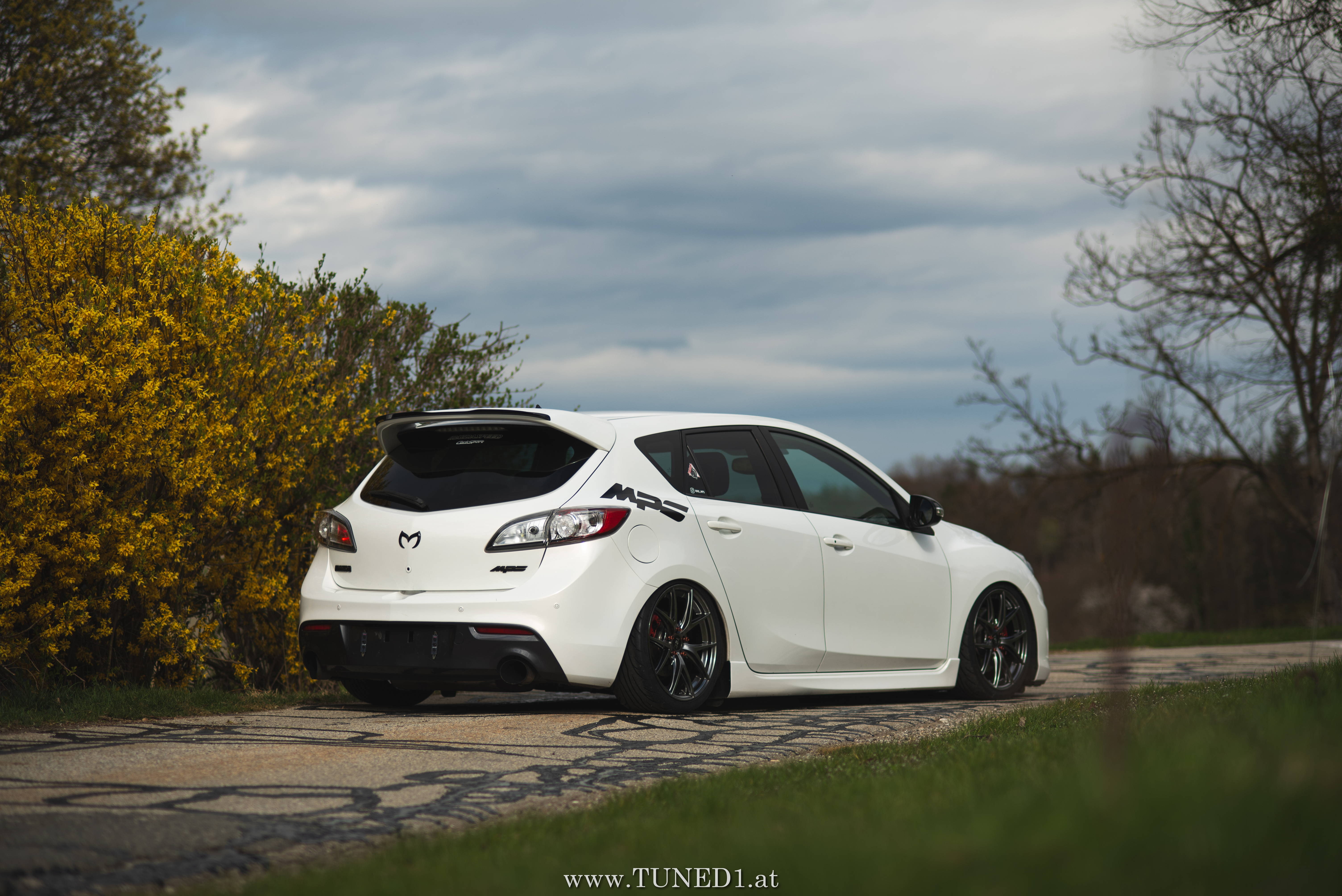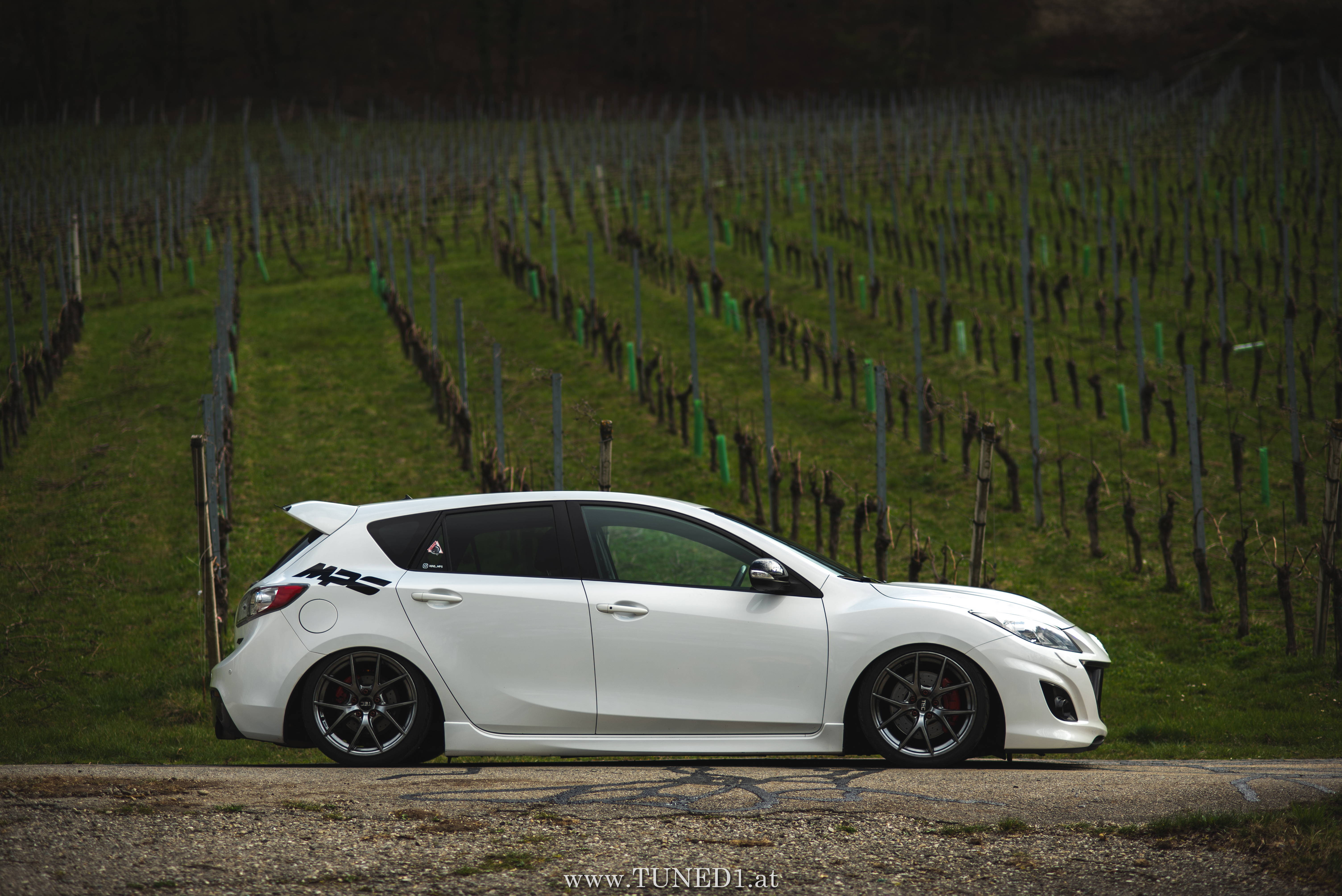 Klein, weiß, Luft und Turbopfeifen.. das sind die Hauptzutaten für Spaß. Im Fahrmodus eher ein Underdog und von vielen unterschätzt, ist der MPS doch die sportlichste Variante, die man von einem Mazda kaufen kann. Der gar nicht so kleine 2.3 Liter 4 Zylinder leistet dank Aufladung satte 260PS und 380NM. Abgeregelt wird bei 250km/h. Also ein echter kleiner Sportler.