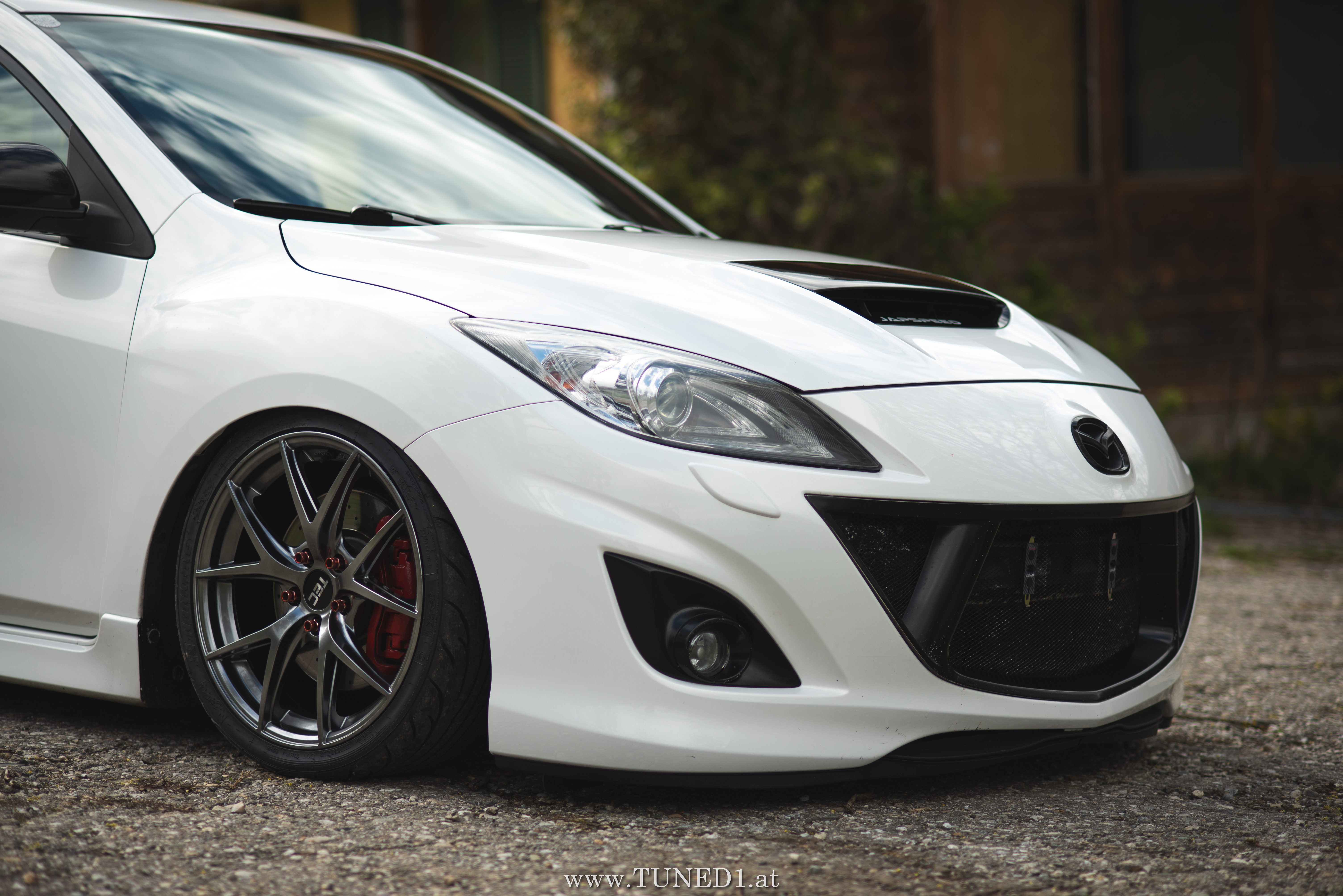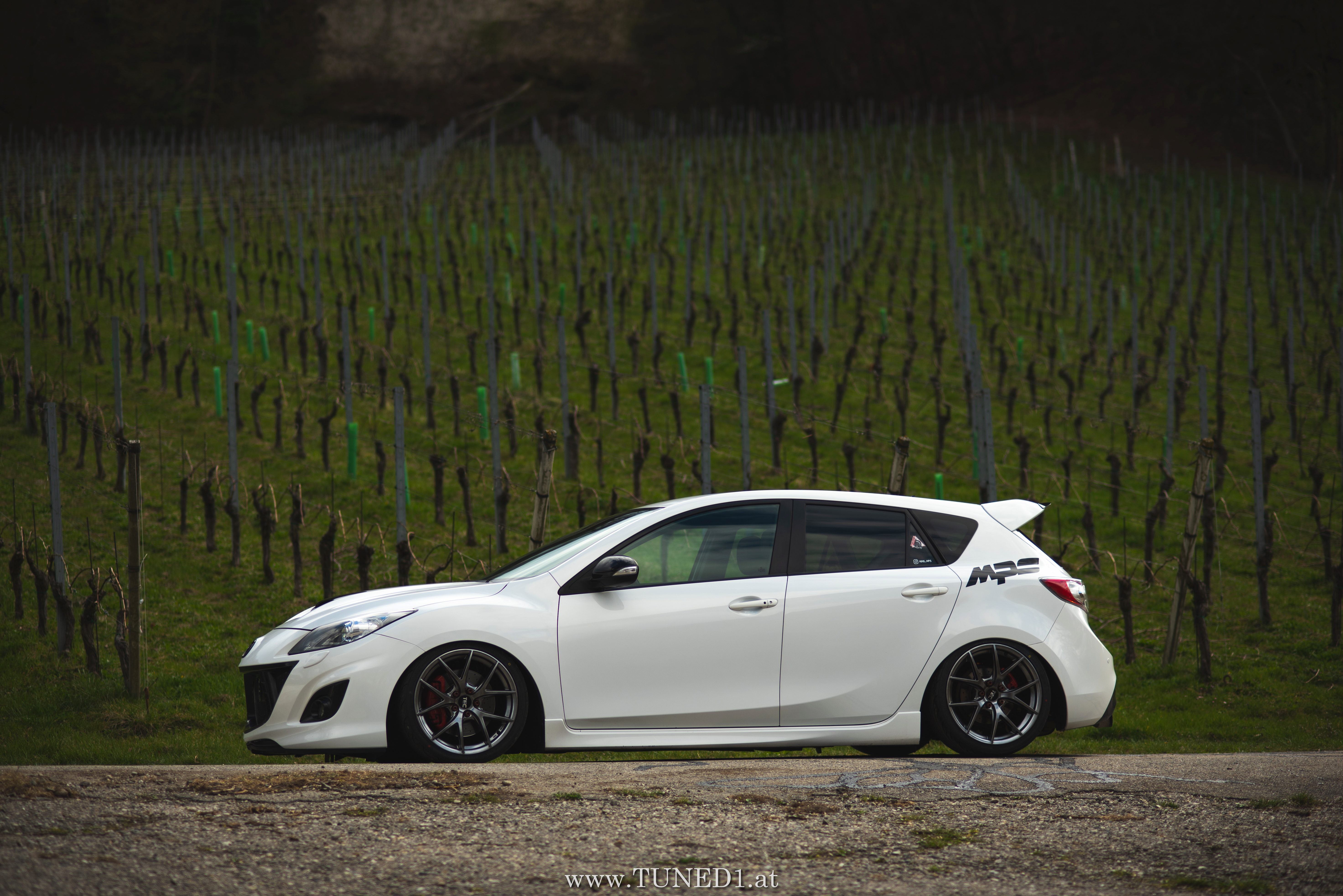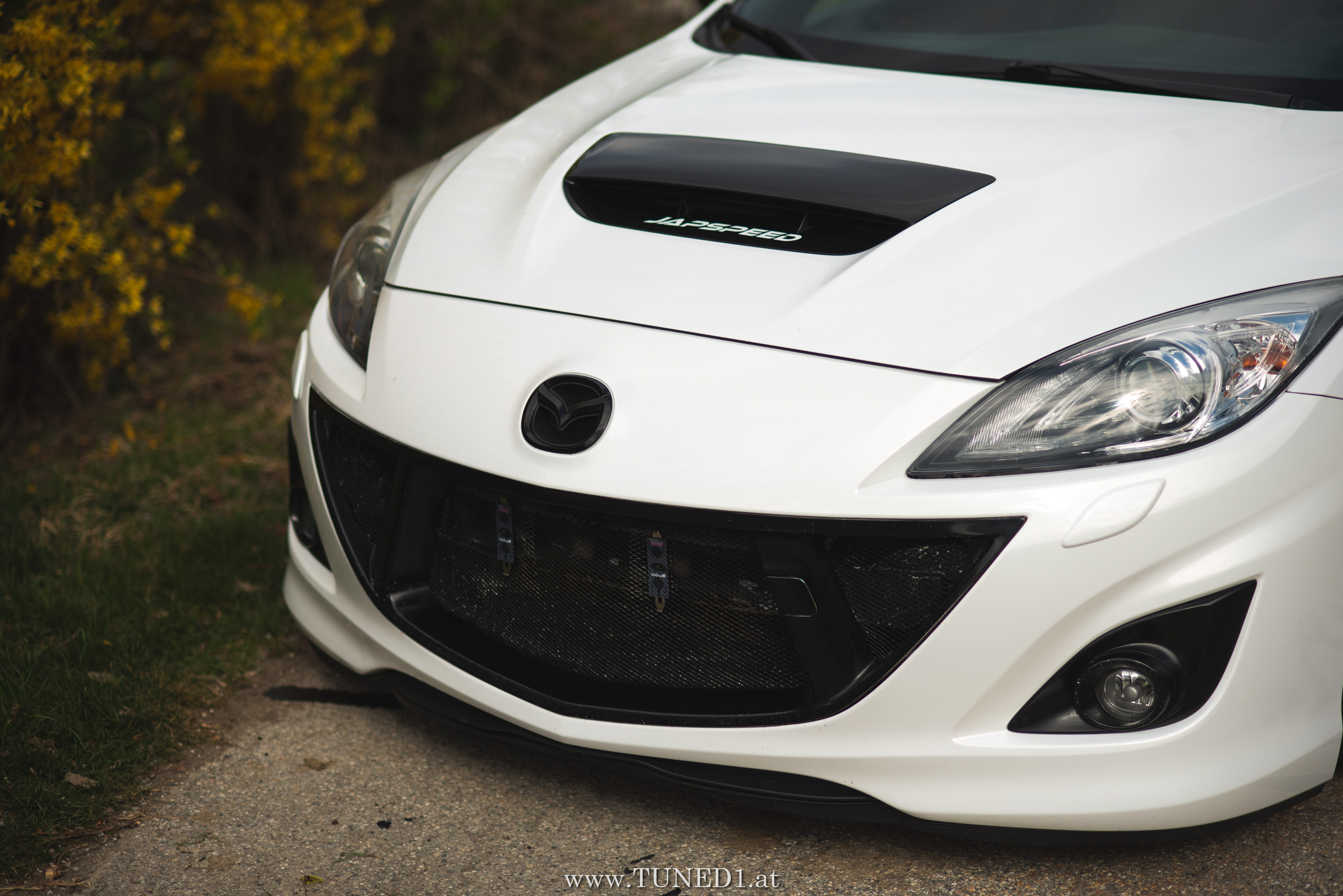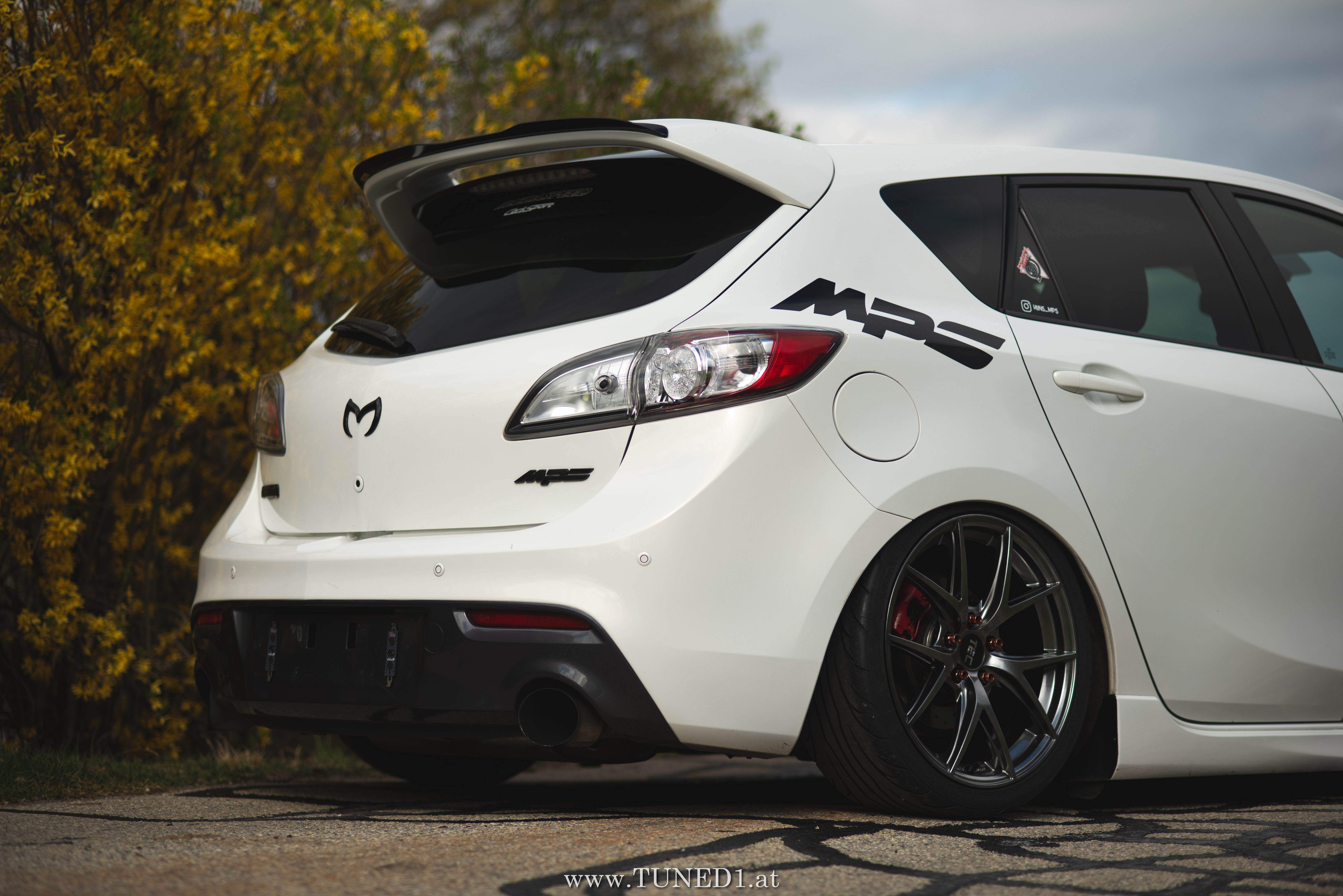 Klein, weiß, Luft und Turbopfeifen.. das sind die Hauptzutaten für Spaß. Im Fahrmodus eher ein Underdog und von vielen unterschätzt, ist der MPS doch die sportlichste Variante, die man von einem Mazda kaufen kann. Der gar nicht so kleine 2.3 Liter 4 Zylinder leistet dank Aufladung satte 260PS und 380NM. Abgeregelt wird bei 250km/h. Also ein echter kleiner Sportler.