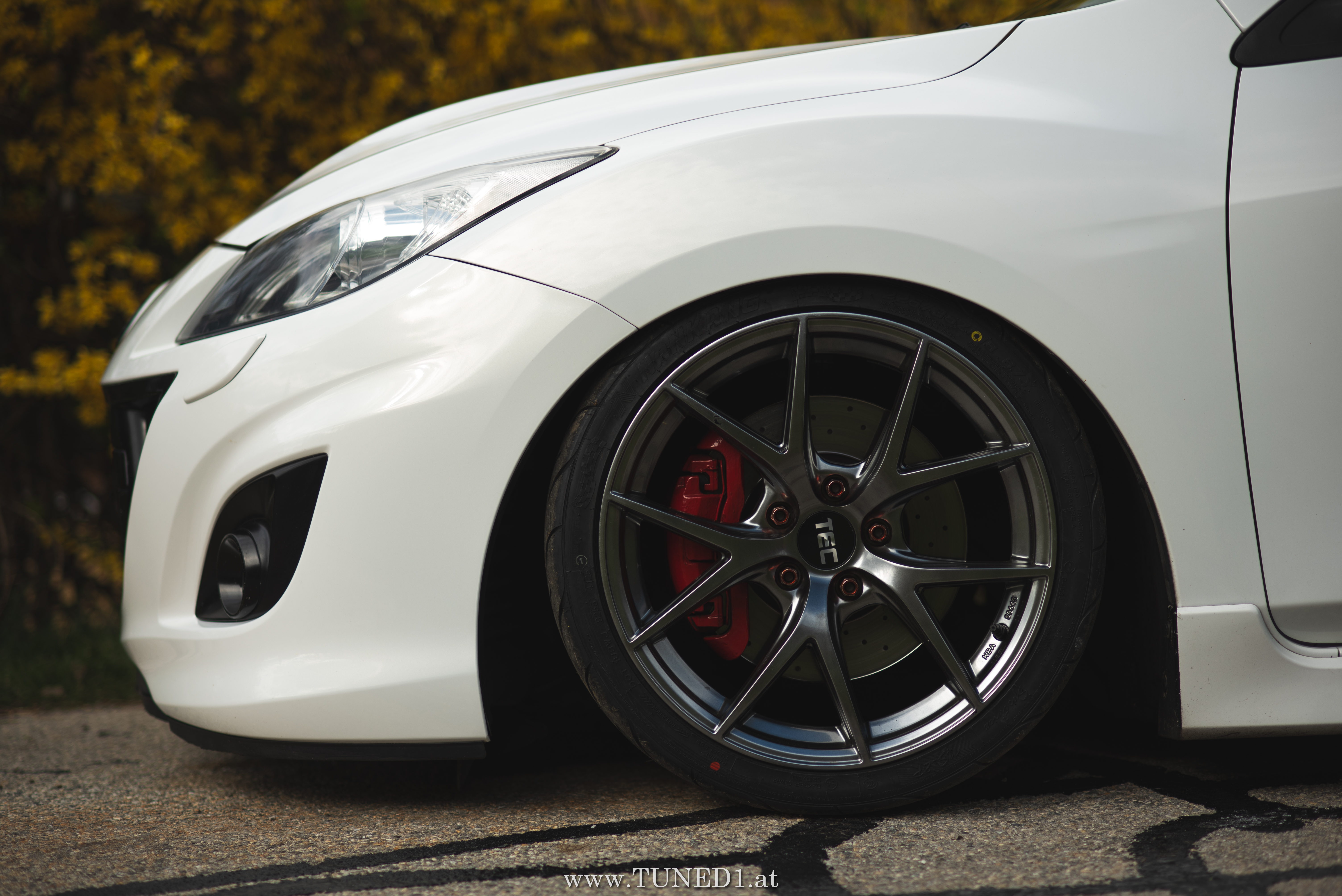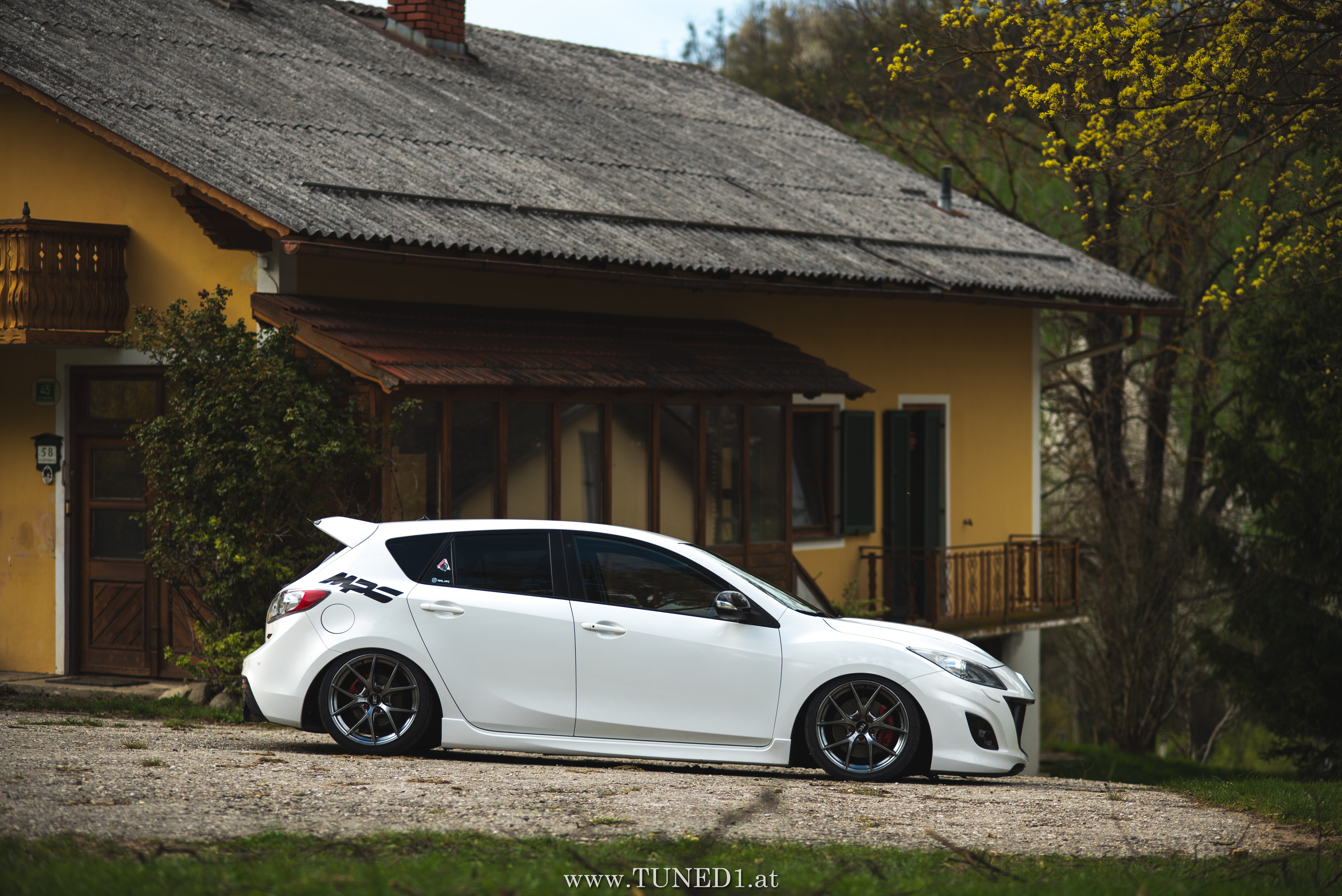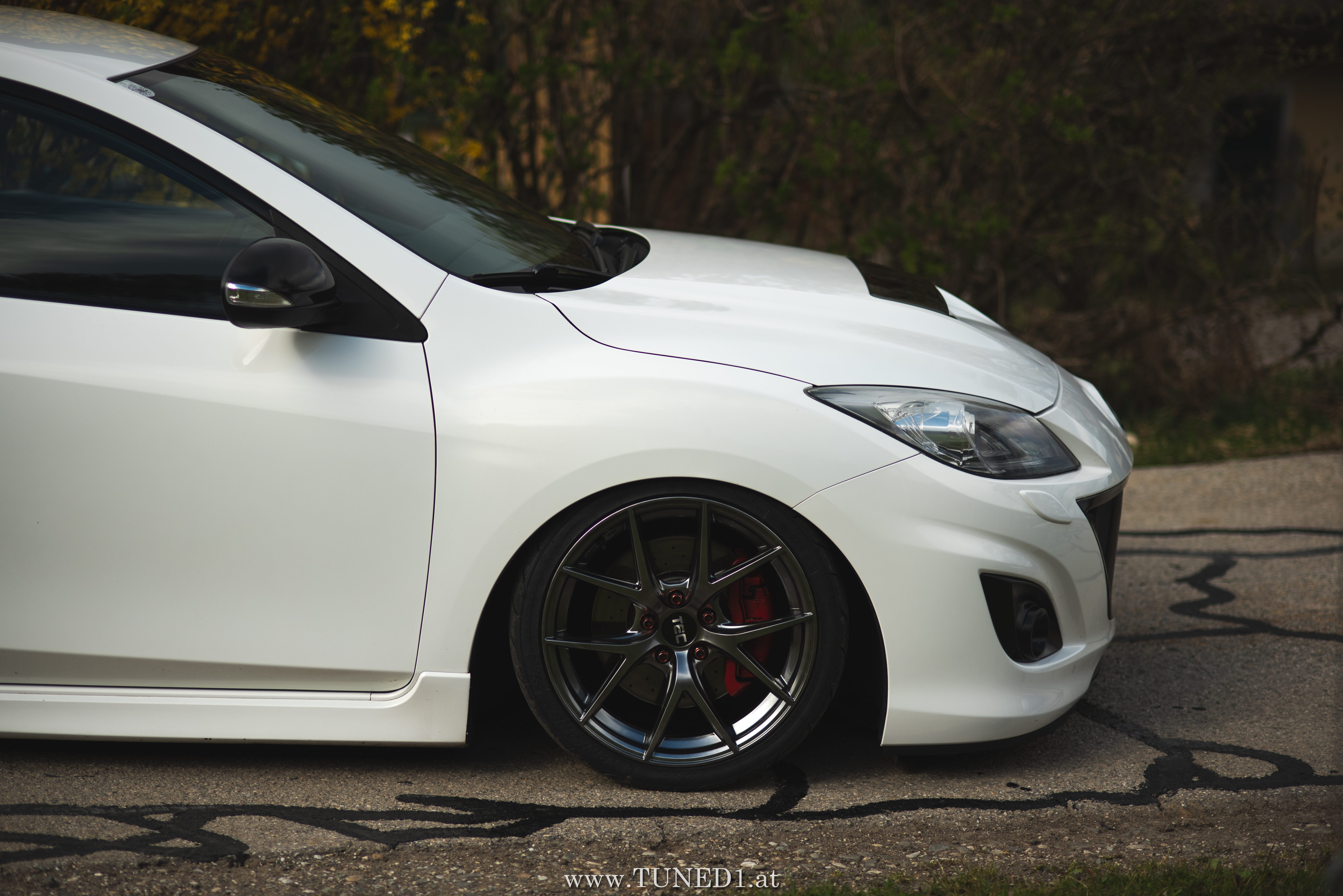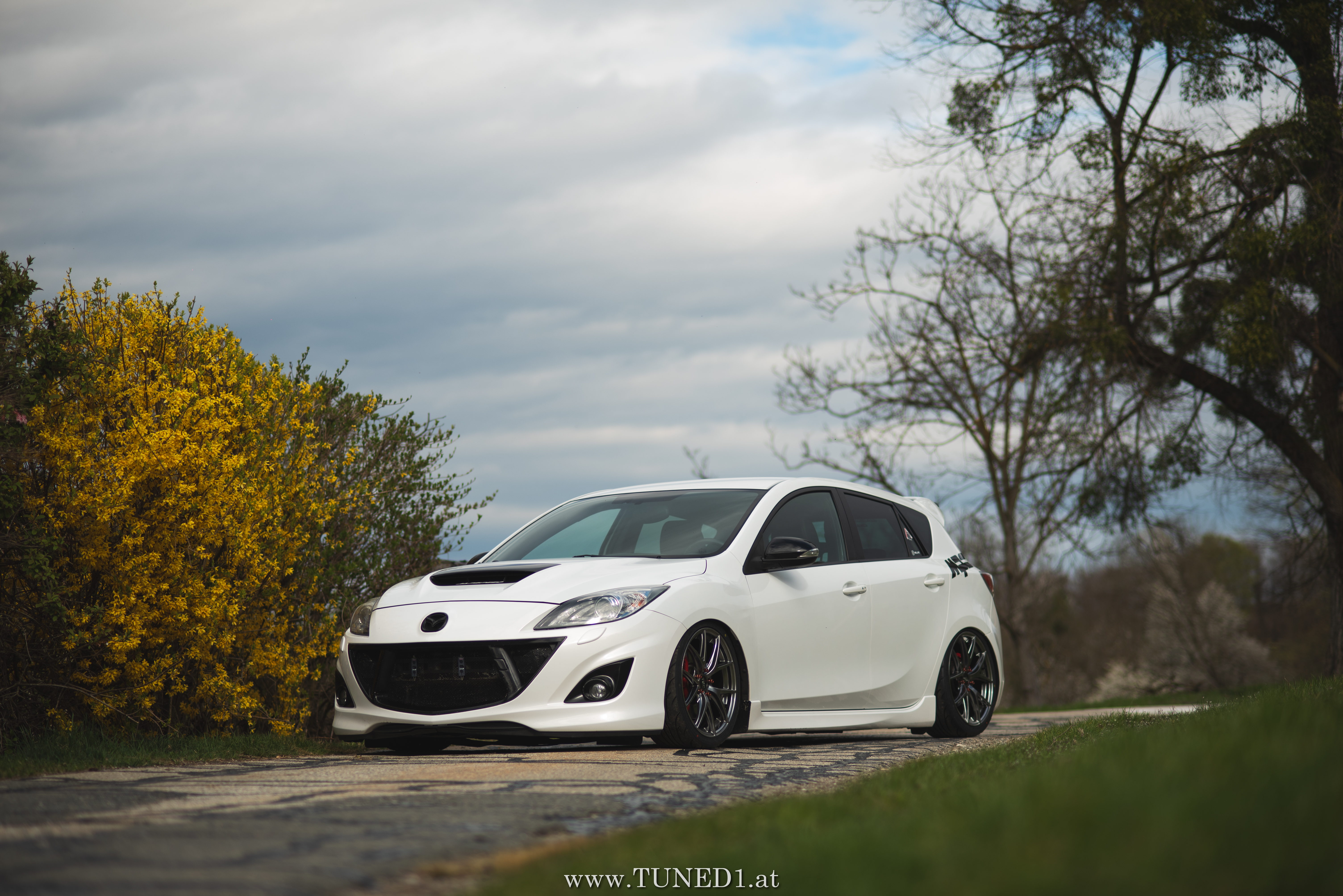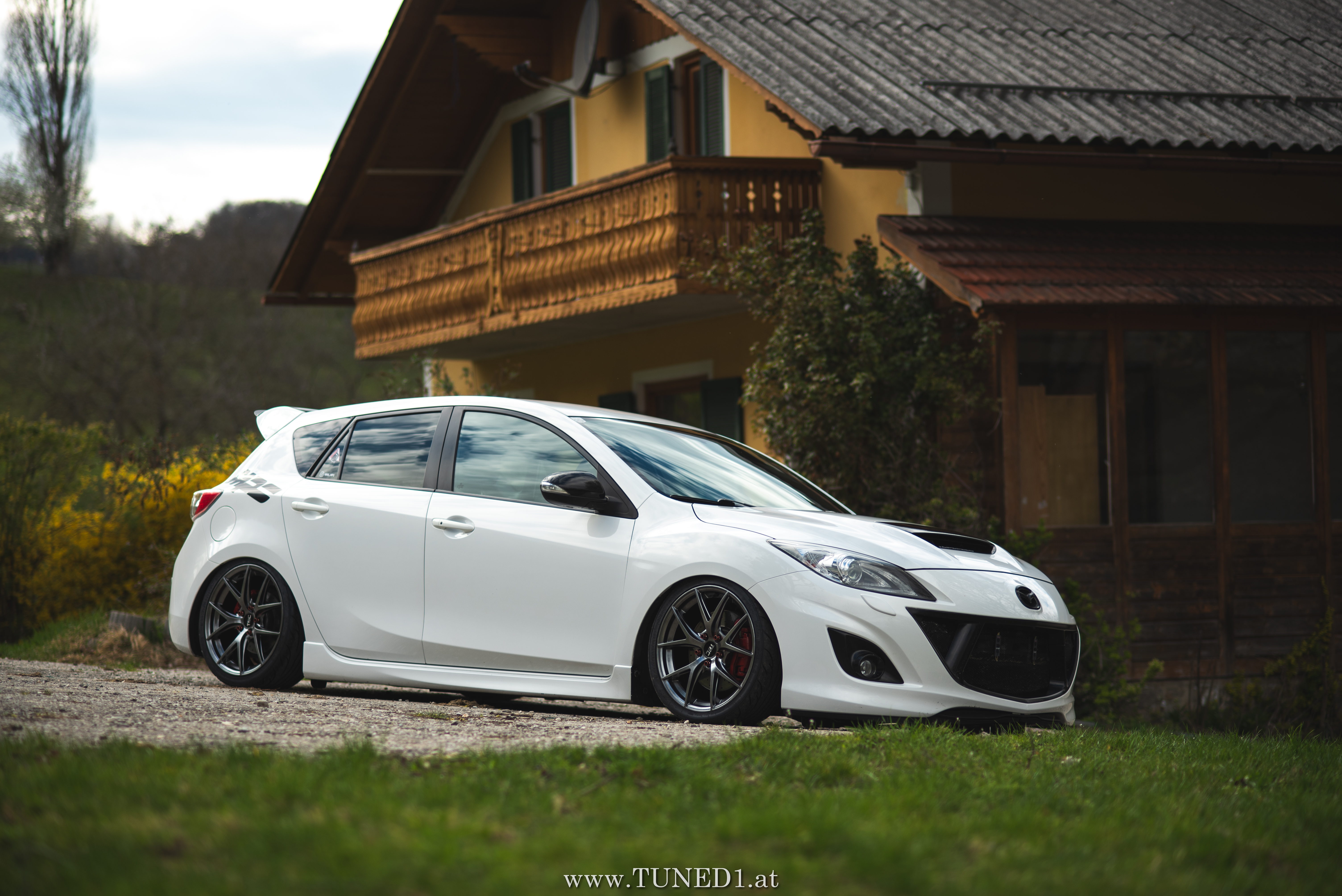 Klein, weiß, Luft und Turbopfeifen.. das sind die Hauptzutaten für Spaß. Im Fahrmodus eher ein Underdog und von vielen unterschätzt, ist der MPS doch die sportlichste Variante, die man von einem Mazda kaufen kann. Der gar nicht so kleine 2.3 Liter 4 Zylinder leistet dank Aufladung satte 260PS und 380NM. Abgeregelt wird bei 250km/h. Also ein echter kleiner Sportler.